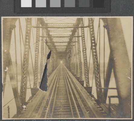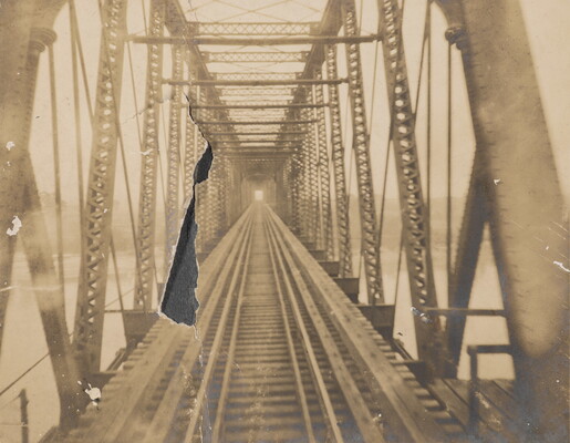 l.l. to l.r. in ink: Wabash Bridge over Missouri River \ of Charles Mo. Nov. 3rd 1904. \ From Rear Fast Mail. St. Louis to Kansas City.