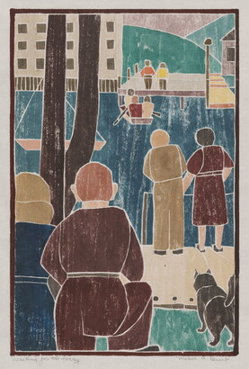 l.l. titled below image, in graphite: Waiting for the Ferry