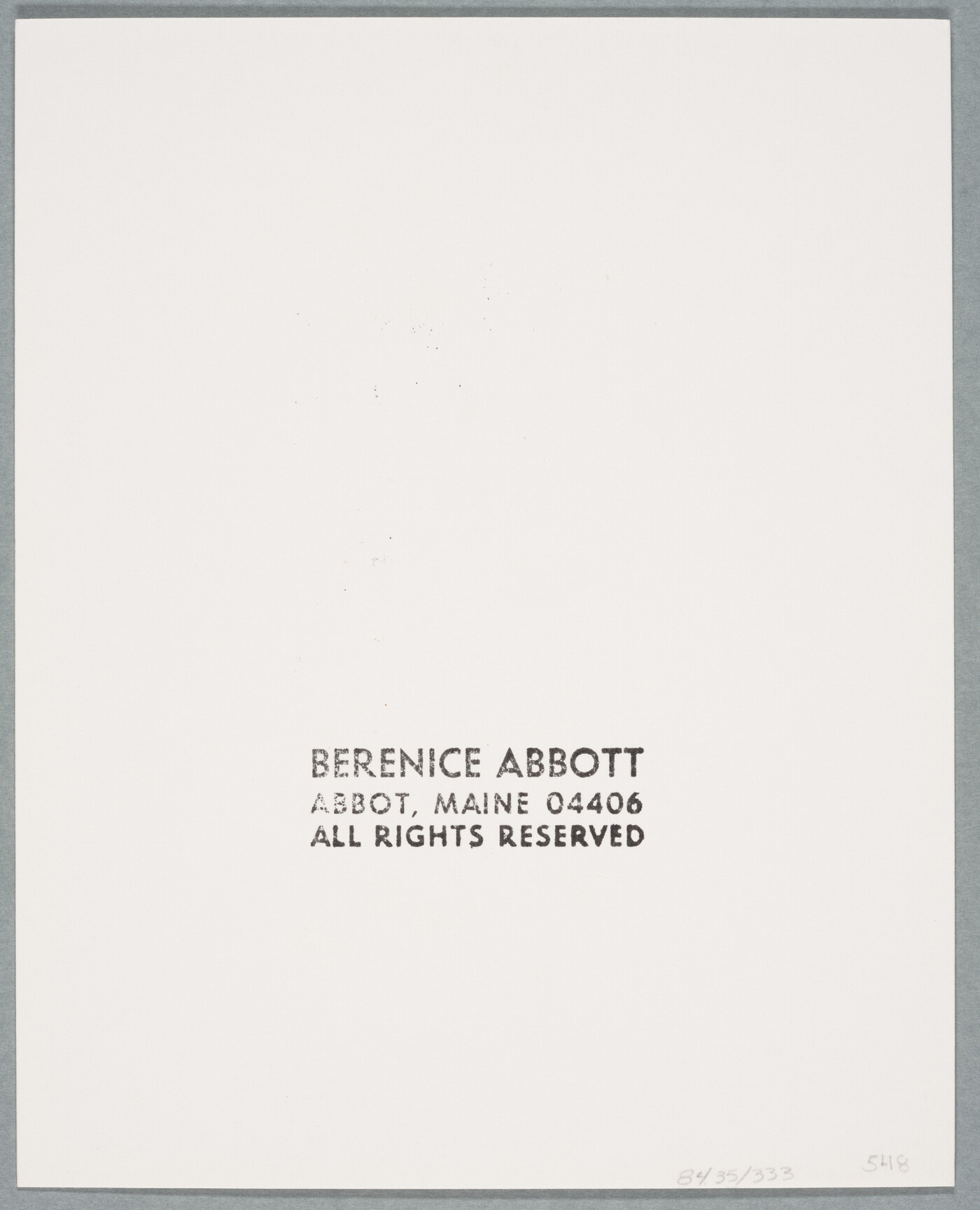 c. [stamp]: BERENICE ABBOTT \ ABBOT, MAINE 04406 \ ALL RIGHTS RESERVED