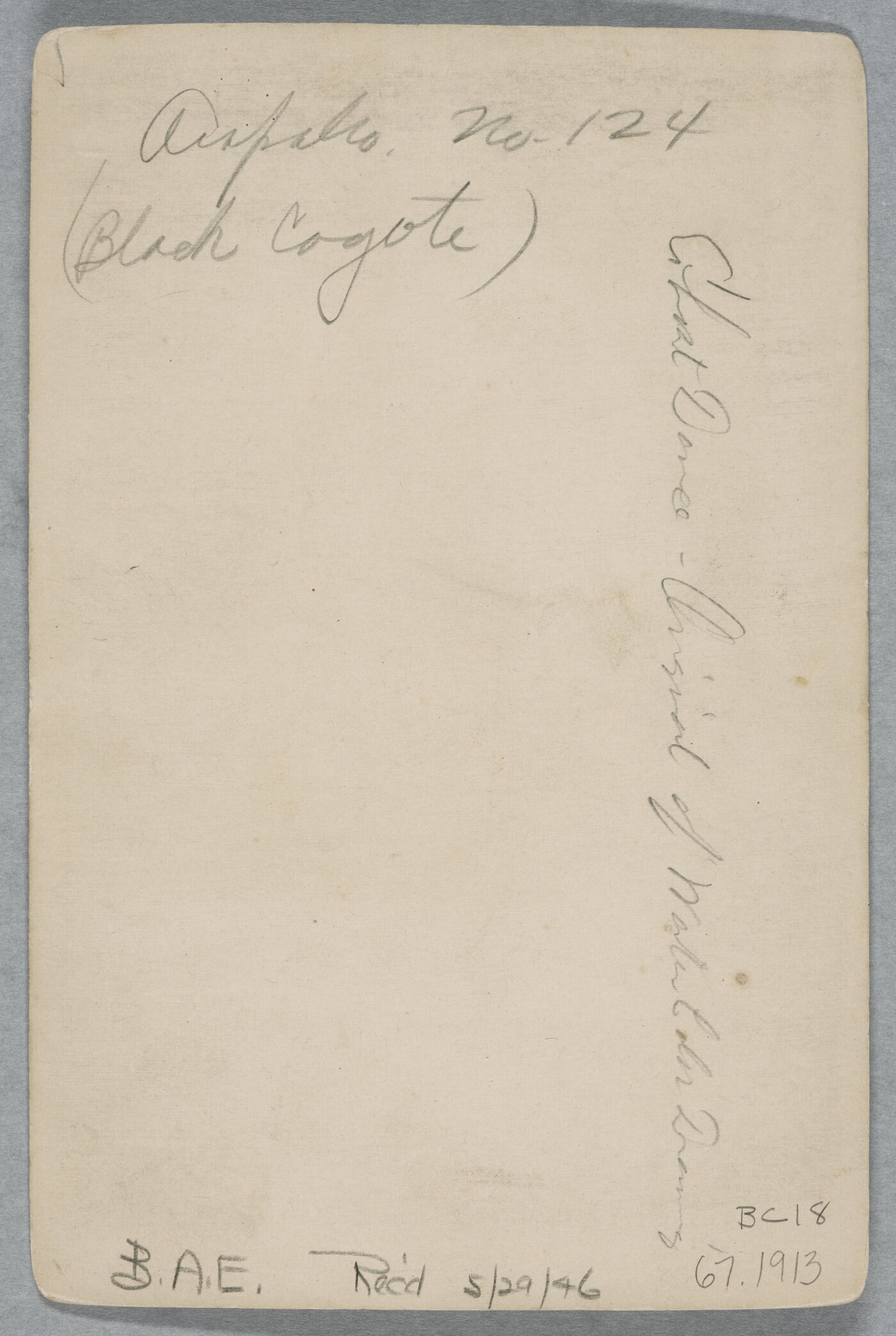 u.c. in graphite: Arapaho. No. 124 \ (Black Coyote)