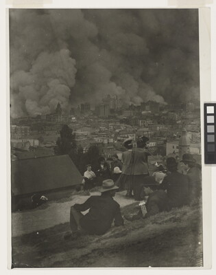 inscribed: SAN FRANCISCO FIRE AFTER \ EARTHQUAKE. LOOKING \ DOWNHILL TOWARD CENTER \ OF CITY \ 14" x 11" \ This Vintage Print by Arnold Genthe \ was shown in the Genthe Exhibition \ at the Staten Island Museum 28 \ September to 2 November 1975. \ Catalog number 17 \ This original photograph by Arnold Genthe, came \ from the collection of a fellow countryman and \ long-time friend of Genthe's, the late William E. \ Neumeyer and Mrs. Neumeyer of New York City