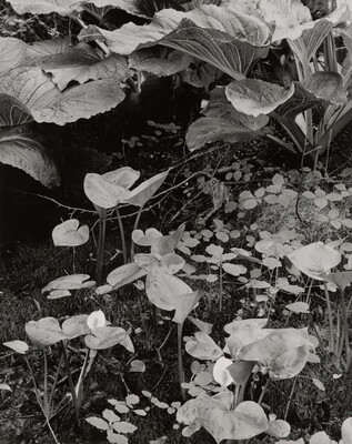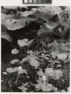u.l. [stamp]: PHOTOGRAPH \ By \ ELIOT PORTER \ No. [in ink]: 38-35 \ [stamp]: Title [in ink]: Water Arum \ and \ Skunk Cabbage \ Great Spruce Head Isl. \ Maine