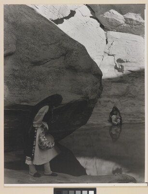 u.c. on paper label: [printed]: A PHOTOGRAPH \ By LAURA GILPIN \ COLORADO SPRINGS . COLORADO \ TITLE: [typed]: THE WATER HOLE. ACOMA PUEBLO \ 11 x 14 Print No.3. \ Copyright.