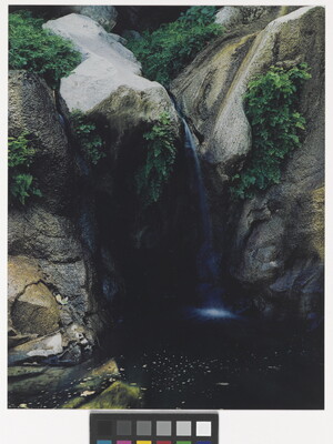 u.l. [stamp]: PHOTOGRAPH \ By \ ELIOT PORTER \ No. [in ink]: 64-123 \ [stamp]: Title [in ink]: POOL, FERNS, WATERFALL \ BAJA