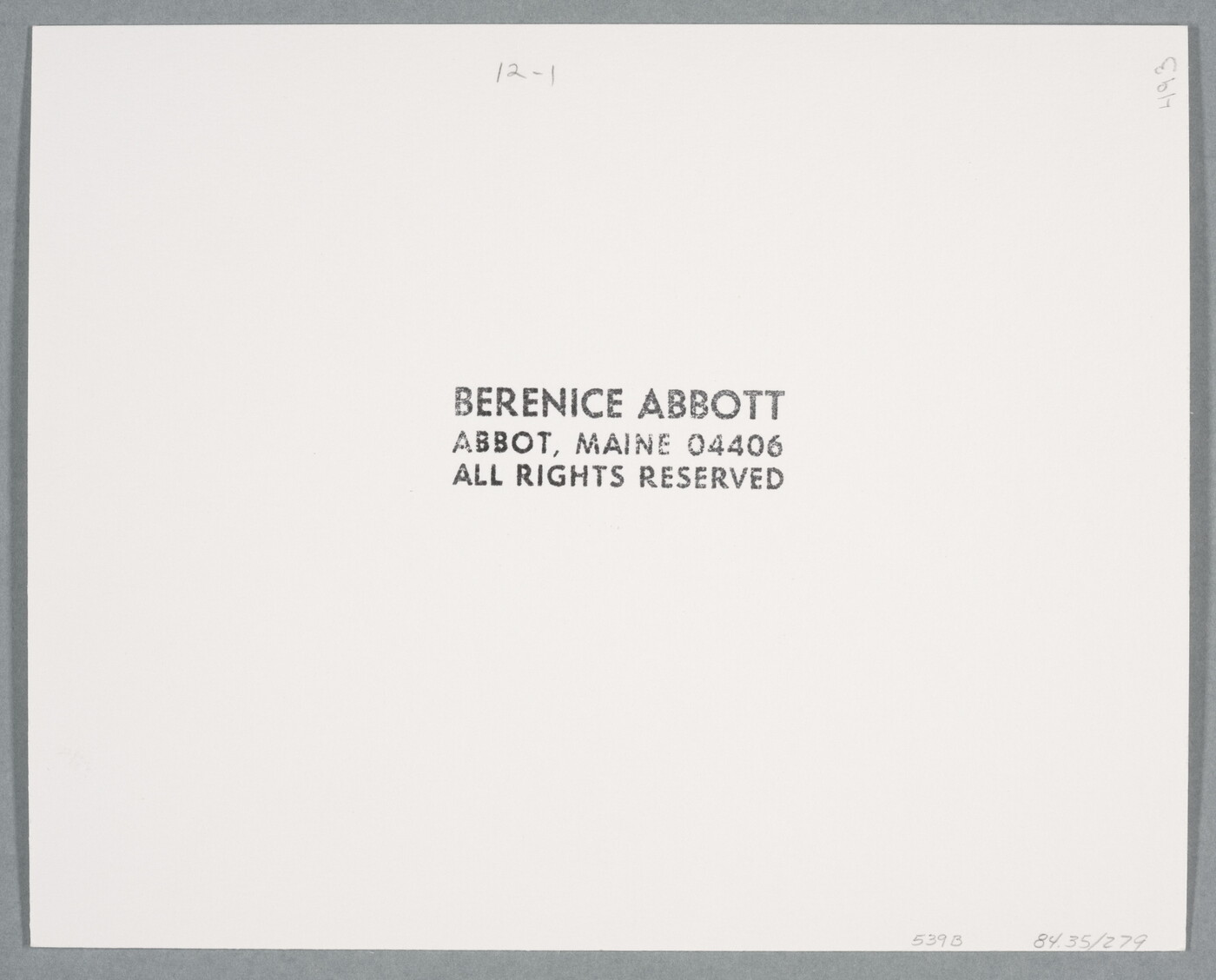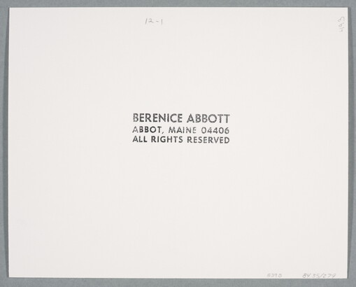 c. [stamp]: BERENICE ABBOTT \ ABBOT, MAINE 04406 \ ALL RIGHTS RESERVED