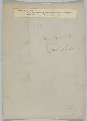 u.c. printed on paper label: 163-4. [crossed out] ANTELOPE. \ With the preceding was a delegate to Washington \ in 1872, but died shortly after his return.