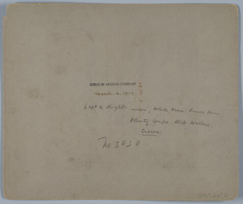 c. to c.r. in graphite: Left ot Right ---------------, White Man Runs Him, \ Plenty Coups, Dick Wallace, \ Crows. \ No. 3430