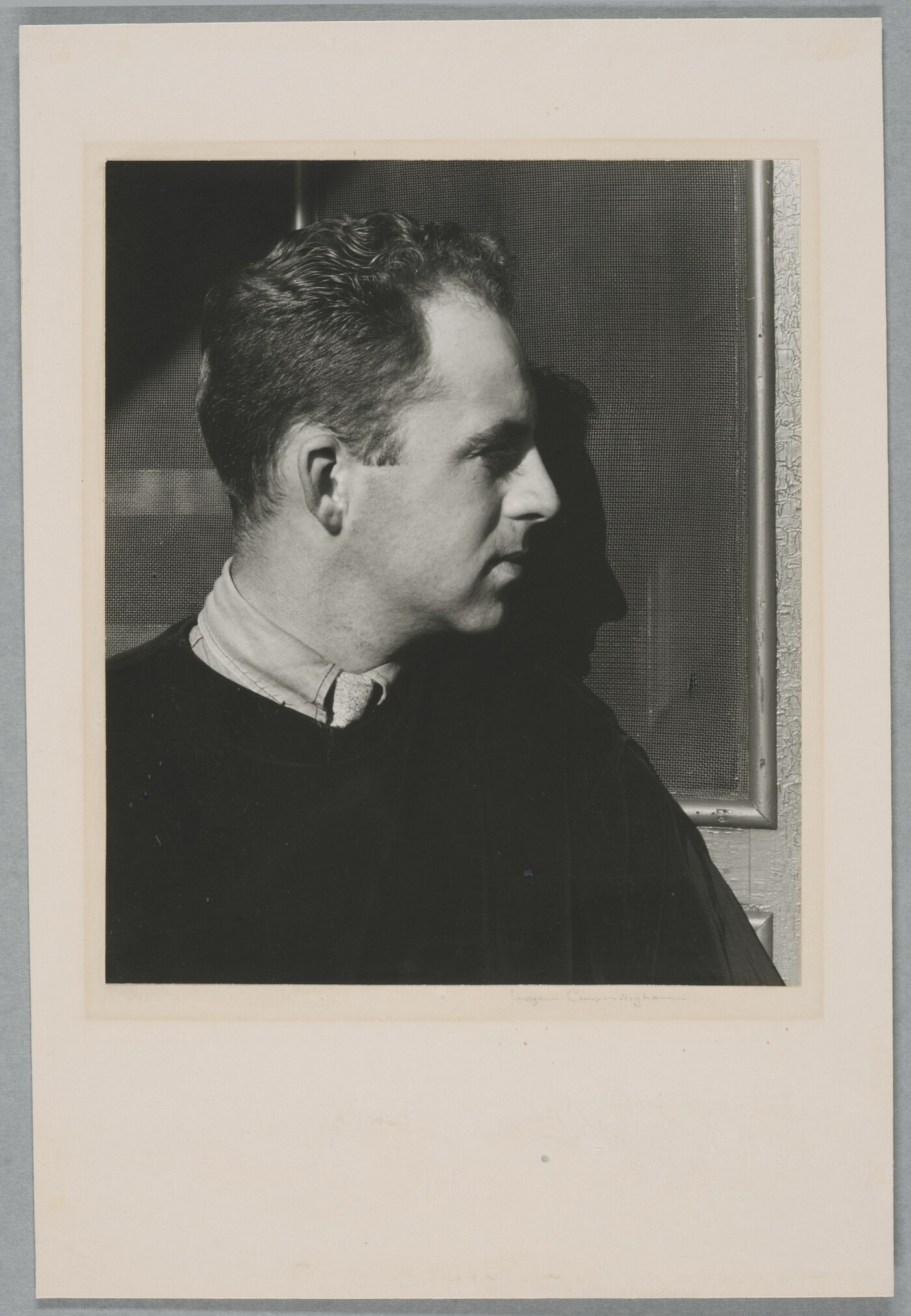 paper label: PHOTOGRAPH BY \ IMOGEN \ CUNNINGHAM \ MILLS COLLEGE P. O. \ CALIFORNIA \ TITLE \ PROCESS \ PRICE