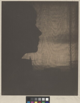 inscribed: #-3- \ #92./#17 - "AT.THE.WINDOW - TWILIGHT." \ #9 \ (PINHOLE) \ PALLADIO.PRINT. \ A/106