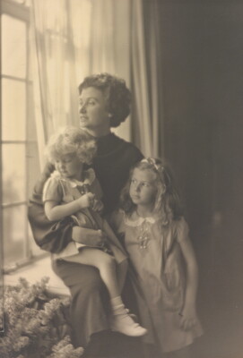 [Woman and two girls by window]
