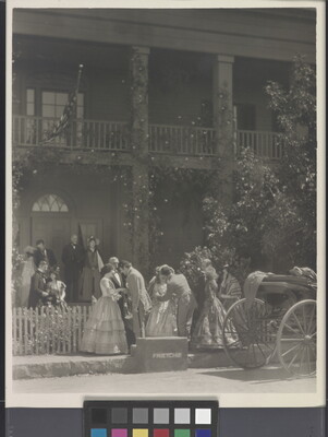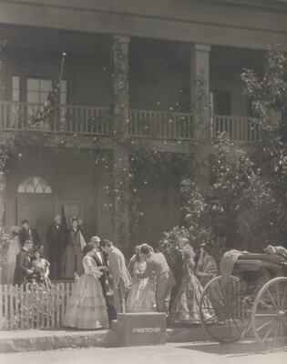 [Women greeting soldiers outside house, "Barbara Frietchie"]
