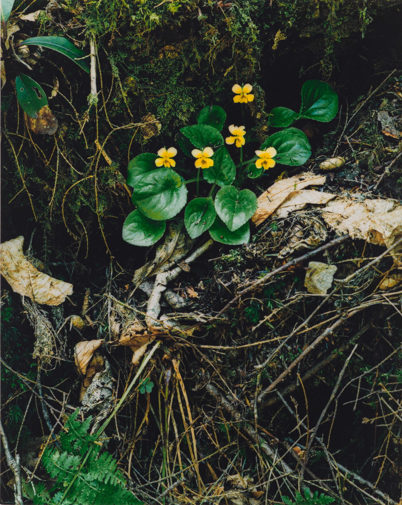 u.l. [stamp]: PHOTOGRAPH \ By \ ELIOT PORTER \ No. [in ink]: 68-117 \ [stamp]: Title [in ink]: YELLOW VIOLETS \ GREAT SMOKY MOUNTAINS \ NATIONAL PARK