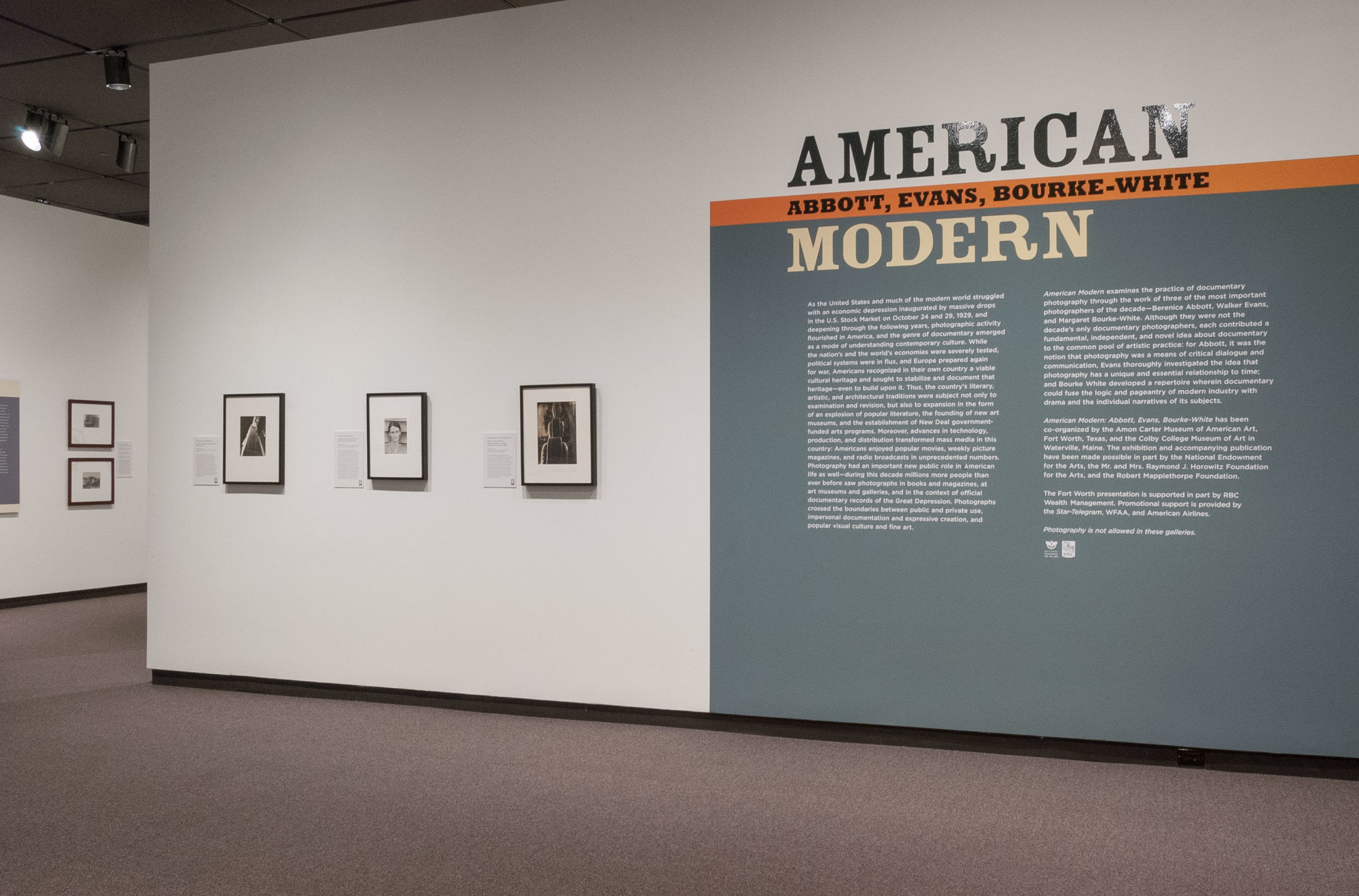 American Modern: Abbott, Evans, Bourke-White has been co-organized by the Amon Carter Museum of American Art and the Colby College Museum of Art in Waterville, Maine. The exhibition and accompanying publication have been made possible in part by The National Endowment for the Arts, The Mr. and Mrs. Raymond J. Horowitz Foundation for the Arts, and the Robert Mapplethorpe Foundation.