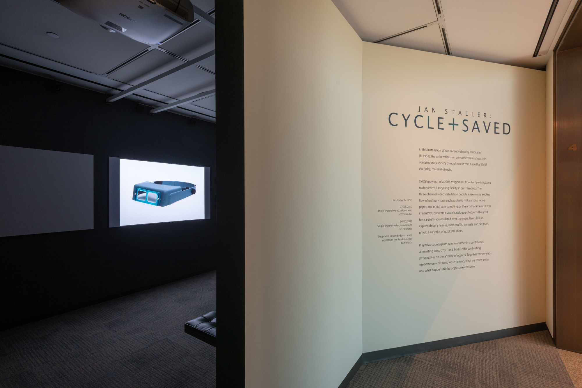 In this installment of two recent videos by Jan Staller, the artist reflects on consumerism and waste in contemporary society through works that trace the life of everyday, material objects. CYCLE grew out of a 2007 assignment from Fortune magazine to document a recycling facility in San Francisco. His three-channel video installation depicts a seemingly endless flow of ordinary trash such as plastic milk cartons, loose paper, and metal cans tumbling by his camera. SAVED, in contrast, presents a visual catalogue of objects Staller has carefully accumulated over the years. Items like an expired driver’s license, own stuffed animals, and old tools unfold as a series of quick still shots.