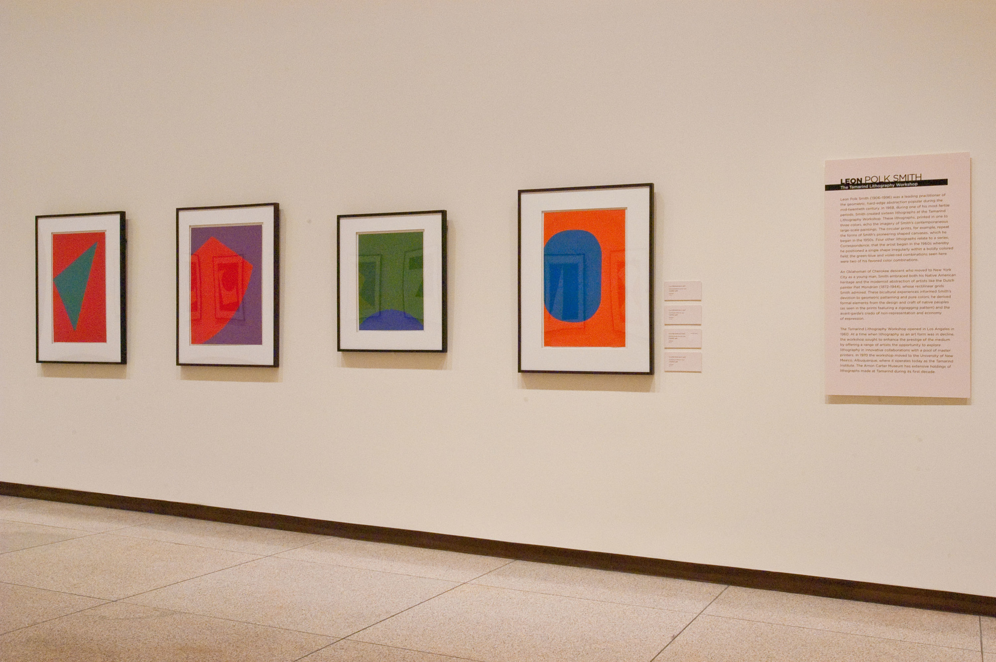 This exhibition of 15 prints from the Carter’s collection embraces both Smith’s American Indian heritage and the modernist abstraction of artists like Dutch painter Piet Mondrian. Smith’s cross-cultural experiences inspired his devotion to geometric patterning and pure colors–he derived formal elements from the design and craft of native peoples and the avant-garde’s credo of non-representation and economy of expression.