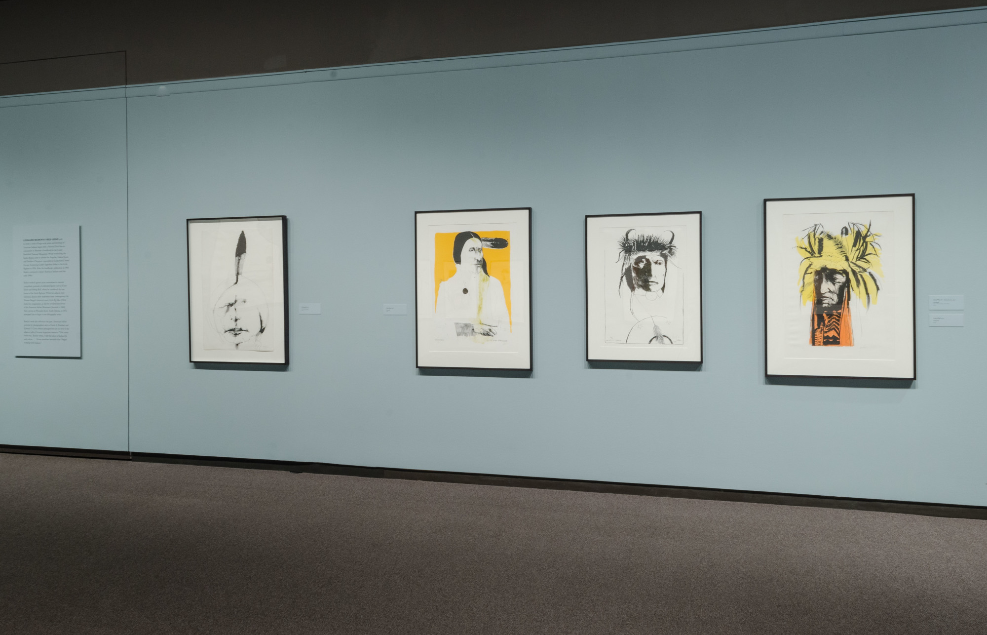Baskin’s conceptual framework, nourished by his admiration for American Indian life and culture, evolved as he researched the project. He took inspiration from Thomas Berger’s historical novel Little Big Man, published in 1964, as well as the activities of the American Indian Movement, founded in 1968. The photographic portraits of American Indians taken by Edward S. Curtis and Frank A. Rinehart also became a point of departure, encouraging Baskin to focus on the faces of his subjects. This exhibition, comprised of nearly 20 prints and drawings created between 1971 and 1974, includes Baskin’s prized images of Chief Gall, Crazy Horse, and Sitting Bull (whom he considered the real heroes of the legendary Battle of the Little Bighorn), in addition to striking images of well-known figures from the Arapaho, Assiniboine, Cheyenne, Crow, and Sioux nations.