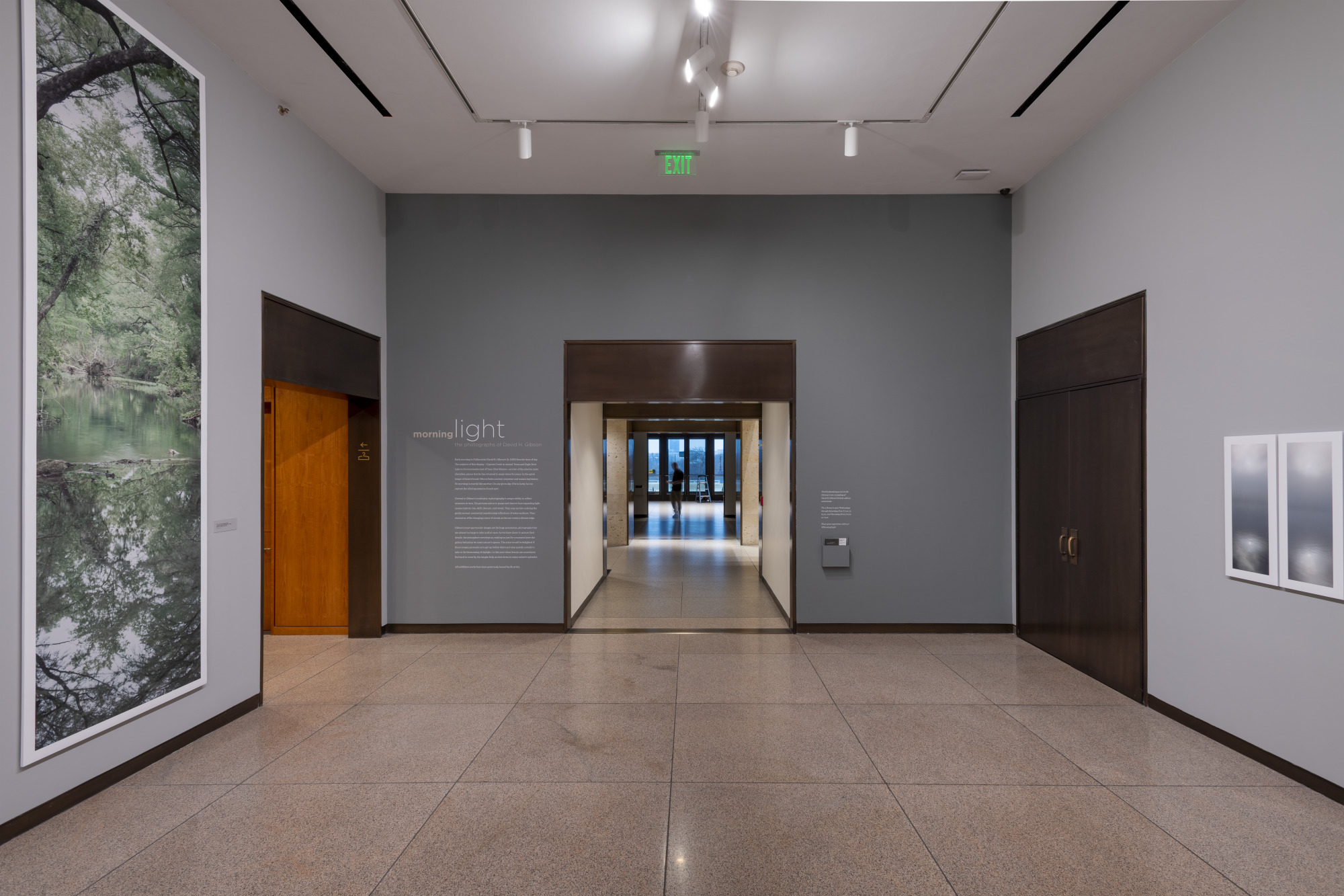 The 20 works in the exhibition draw attention to the artist’s repeated return to each site and his fascination with dawn’s break into day. In those mystical moments, he finds the essence of each spot. Through his photographs, Gibson coaxes us into getting up before dawn, stepping outside, and noticing the quick tempo of early morning’s changing light.