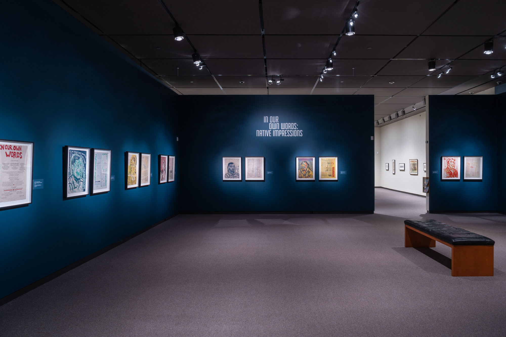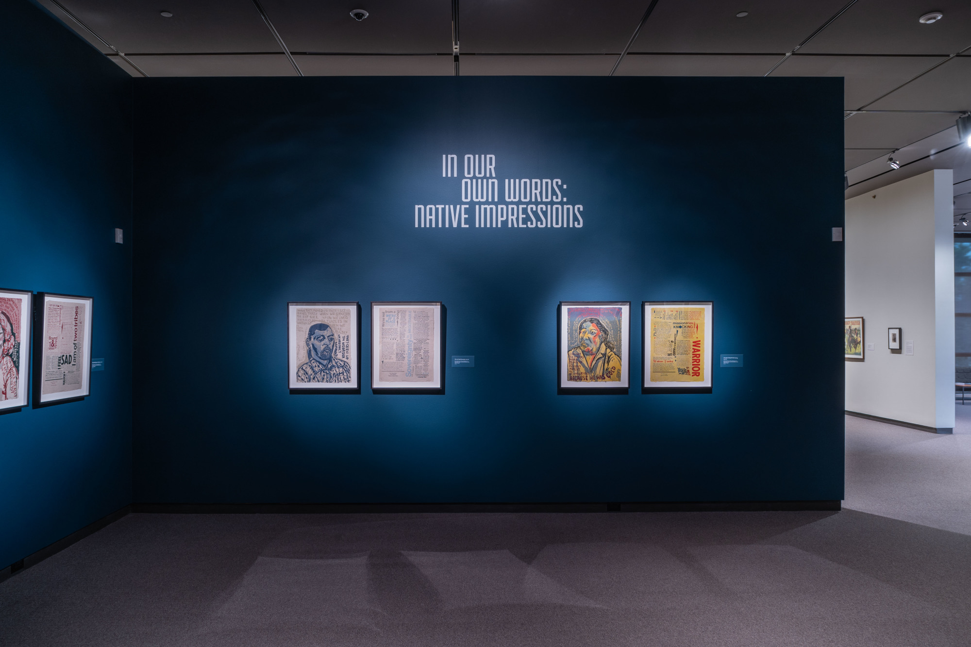 In Our Own Words features a portfolio of 26 vibrantly colored printed portraits by living artists Daniel Heyman (b. 1963) and Lucy Ganje (b. 1949). The two collaborated in portraying present-day members of North Dakota Indian nations, including those around Standing Rock, recently in the news.