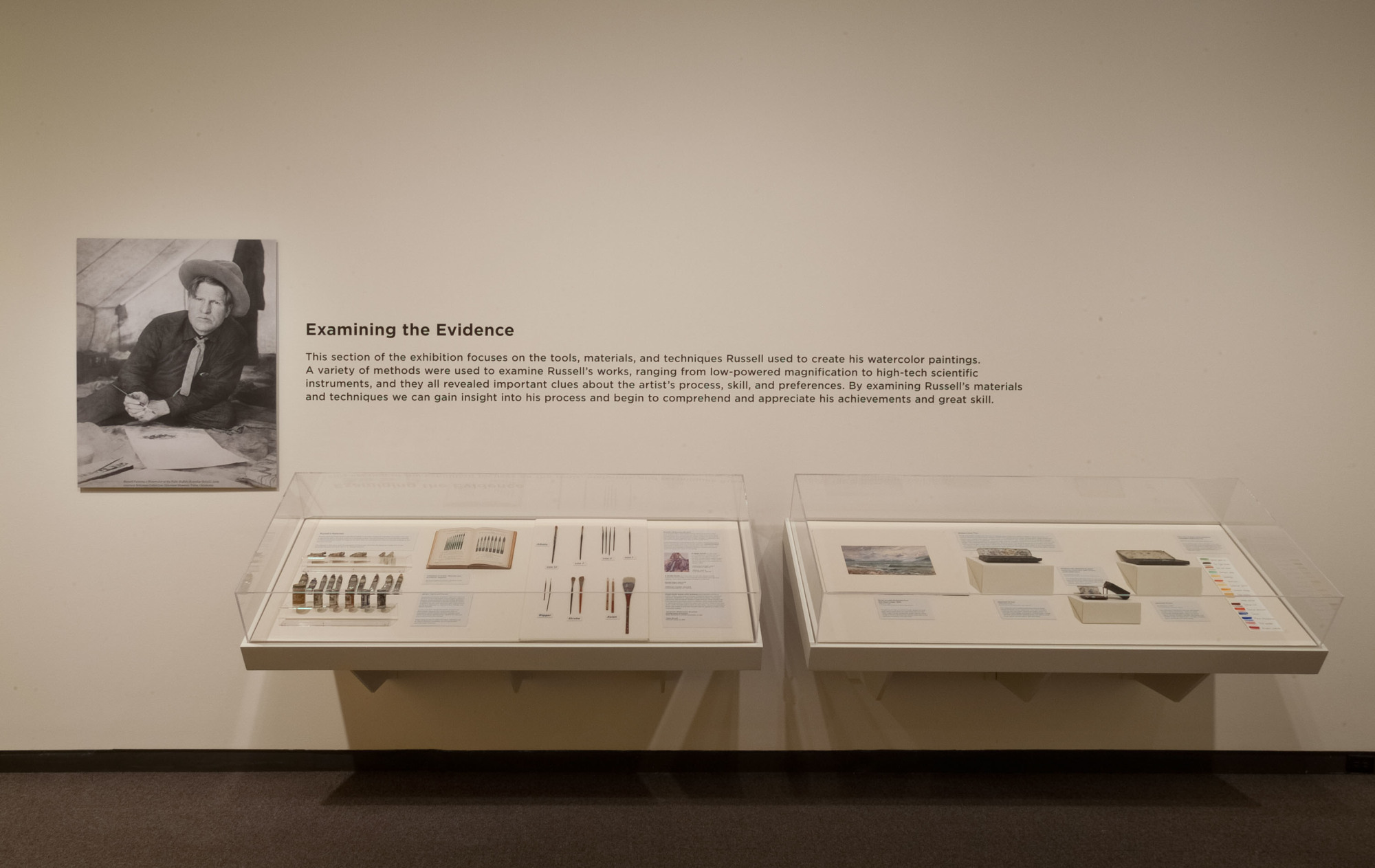 This special exhibition of some of the finest watercolors by Charles M. Russell (1864-1926) displays depictions of the Old West never before brought together. In addition to the watercolors, the exhibition also includes a special conservation section devoted to the technical aspect of his work. Actual studio materials such as his paints, brushes, and his last watercolor palette are on display.