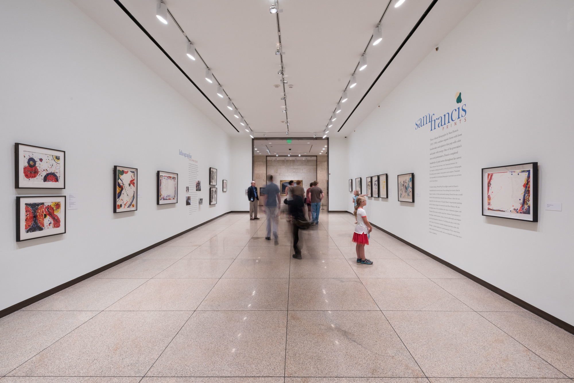 An injury during a World War II test flight resulted in Francis’ hospitalization for several years. It was during his recovery that he began making art. Later he would become a world traveler, visiting France, Indonesia, Japan, and Thailand, among other locales. His artistic models ranged from Abstract Expressionism to Surrealism, while literature, science, Eastern philosophy and religion, and the psychoanalytic theories of Carl Jung all played a role in his work. Some of the forms in his prints resemble biological specimens or cells dividing. These same forms also evoke traditional symbols—the life-giving sun or an imperfect circle that never reaches completion.