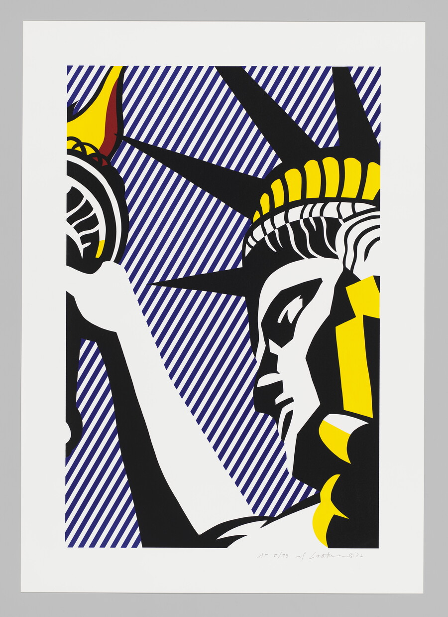 Image: Roy Lichtenstein (1923–1997), I Love Liberty, 1982, planographic print, Whitney Museum of American Art, New York; The Roy Lichtenstein Study Collection, gift of the Roy Lichtenstein Foundation, 2019.161, © 2025 Estate of Roy Lichtenstein/DACS