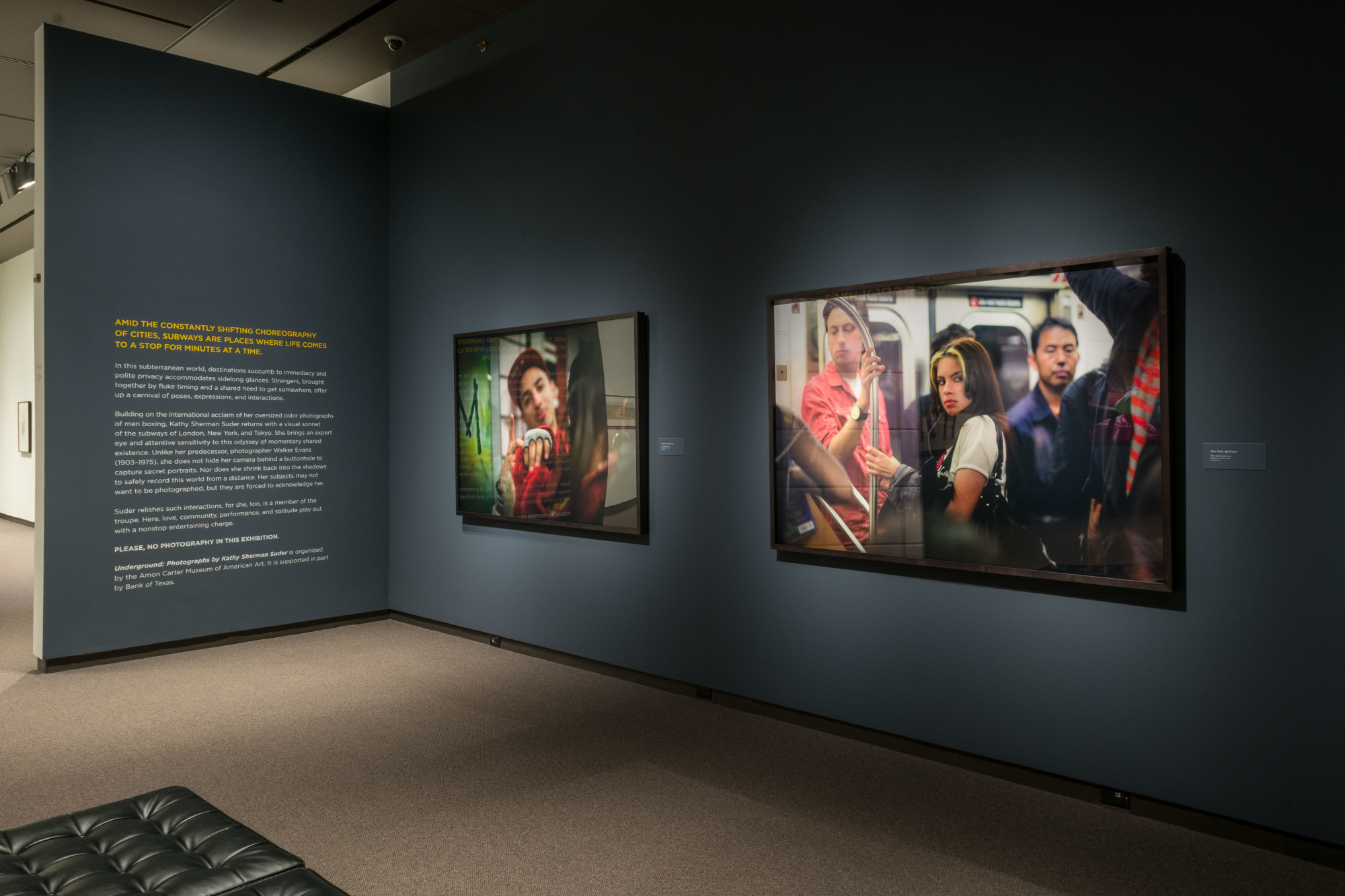 Photographer Kathy Sherman Suder gained international acclaim in 2004 for her poetic, oversized color close-ups of men boxing. Now she returns with an intimate sonnet to urban transit. The culmination of more than six years of photographing people riding the subways of London, New York, and Tokyo, this exhibition of 12 oversized works reflects a symphony of performance. On Suder’s confined stage, private and public collide; everyone watches each other; and love, friendship, and solitude play out in the intimate environs of subway cars. The exhibition is accompanied by the artist’s new book Underground: London, New York, Tokyo.