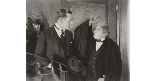 [Wallace Reid holding hat, bag and walking stick with Raymond Hatton, "Affairs of Anatol"]