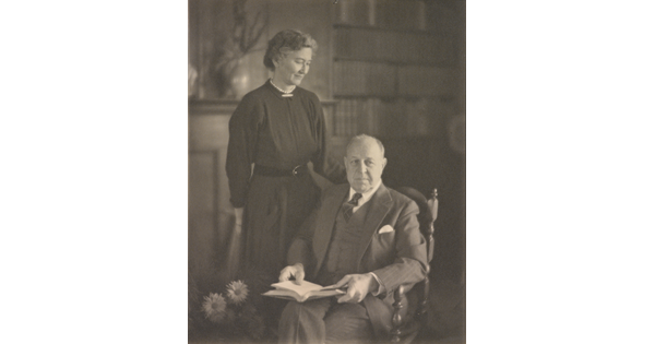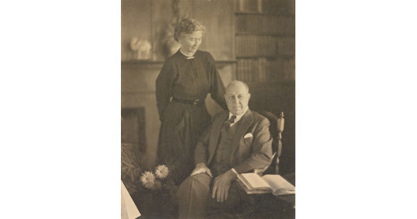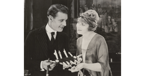 [Forrest Stanley and Kathlyn Williams looking at dinner seating chart, "Forbidden Fruit"]