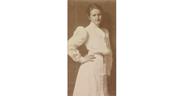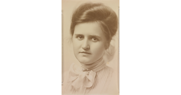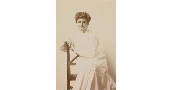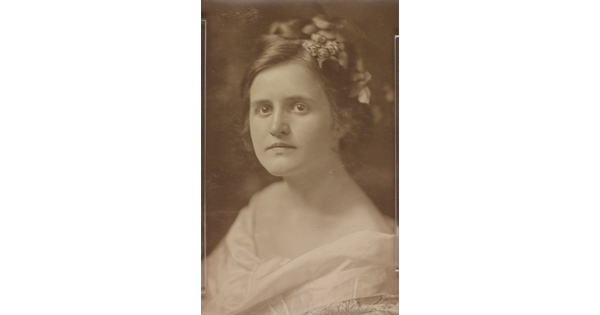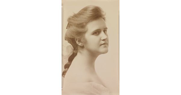 • [Profile portrait of Clara Sipprell with braid and bow]