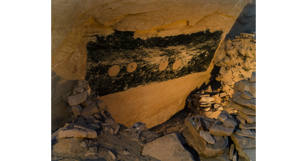 • [Sandstone with a Small Blue and Yellow Petroglyph]