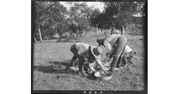 • Cowpunchers butchering a beef out on the range. LS Ranch, Texas.