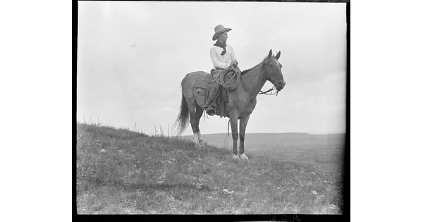 • A JA cowboy mounted on his pony. JA Ranch, Texas.