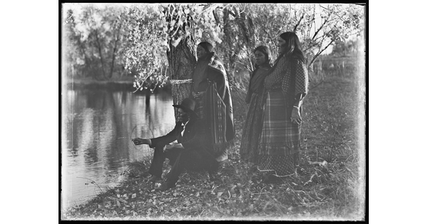 Quanah Parker, Comanche Chief, and three of his wives, Ballard Spring, Matador, Texas