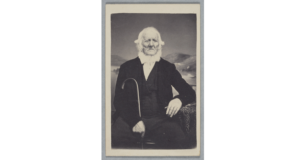 • A black-and-white portrait photograph of the head and shoulders of a formally dressed White man with a full beard.