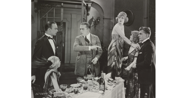 [Elliot Dexter, Gloria Swanson, Wallace Reid and Wanda Hawley around small table, "Affairs of Anatol"]