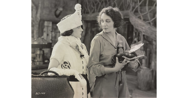 [Gloria Swanson with suitcase and Dorothy Cumming with dishes, "Affairs of Anatol” outtake used in “Don’t Tell Everything"]