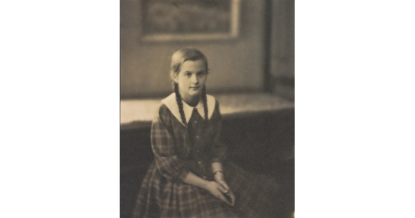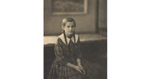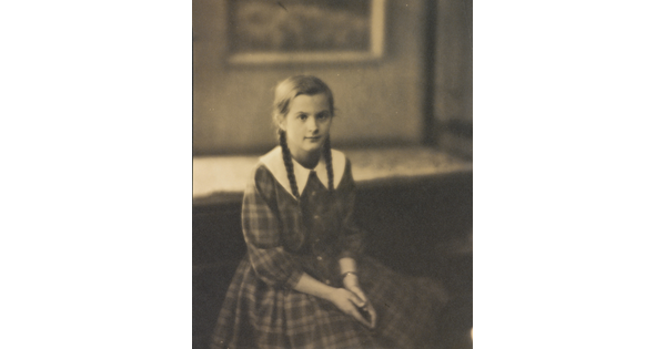 • [Girl with braids, seated in armchair]