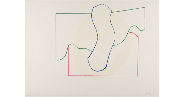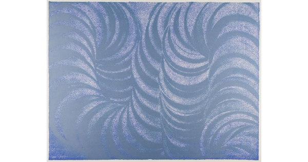 • A color print that, at first, looks blank but has very faint blue and green lines cross-hatched across the surface.