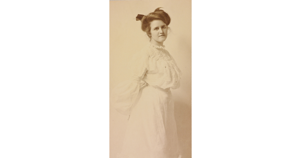 • [Portrait of Clara Sipprell standing in white dress]