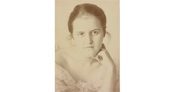 • [Oval portrait of Clara Sipprell in black]
