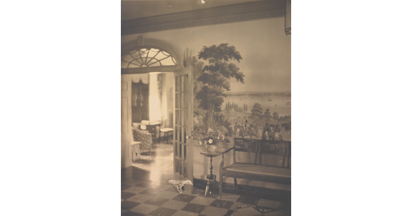 • [Room with french doors and mural]