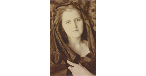 • [Portrait of Clara Sipprell with veil draped around head]