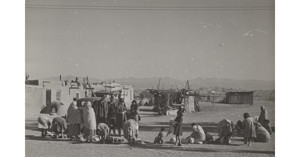 • [Pueblo women and children gathered to sell goods]