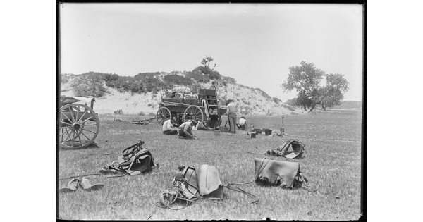 www.cartermuseum.org/.../spur-chuck-wagon-cowpunchers-busily-engaged-work-around-camp-spur-range-texas-lcs6309