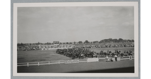 • [Horses and riders in arena, San Luis Valley Ski-Hi Stampede, Monte Vista, Colorado]