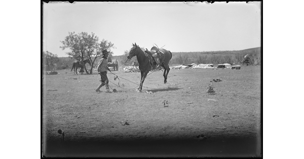 www.cartermuseum.org/.../shoe-bar-cowpuncher-trying-approach-his-horse-pitching-roundup-camp-shoe-bar-ranch-texas