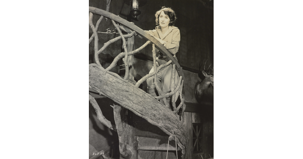 [Dorothy Cumming climbing rustic staircase at fishing cabin, "Affairs of Anatol” outtake used in “Don’t Tell Everything"]
