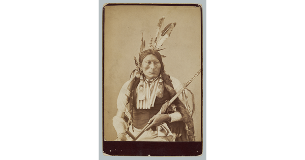 • Portrait of Chief Makhpiya-Luta (Scarlet Cloud) or Makhpiya-Sha (Red Cloud) in Partial Native Dress and with Pipe Bag