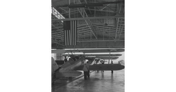 • [Biplanes in Boeing hangar, Wichita, Kansas]