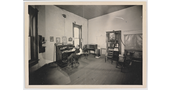 • [Woman inside office, Amherst, Colorado or Venango, Nebraska]